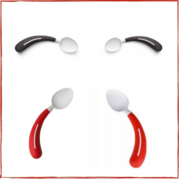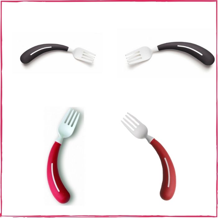 This range of cutlery has been designed to help the elderly with dementia and the young with autism. The curved design of the handles helps the user to bring the food to the mouth. The spoon and fork are available for left or right hand use.