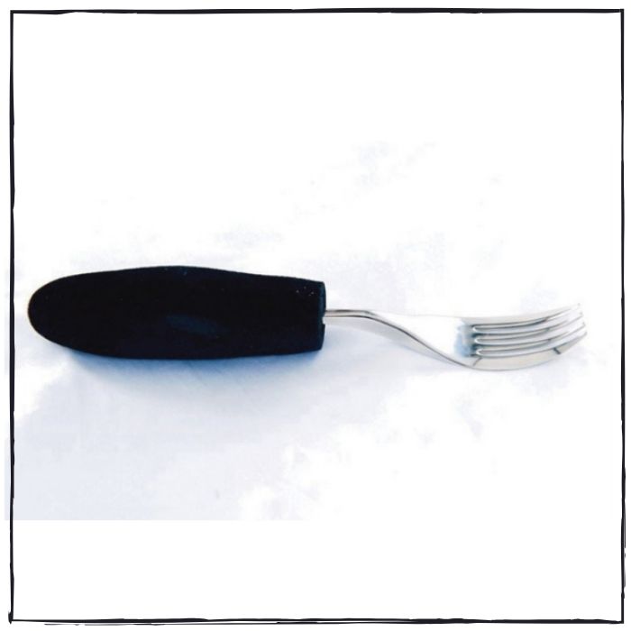 A great device that can be used to cut food as you eat like a knife and a fork with a combination of rounded and bevelled outer tines that will safely cut the food like a knife but with a rocking motion. It can be used with both the left of right hand. An optional Foam Handle is available for user’s who need grip support.