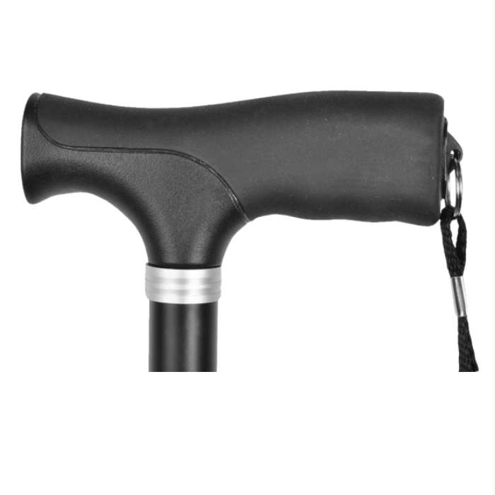 Prevents the walking stick from falling if the user loses grip, reducing bending and the risk of trips or falls.