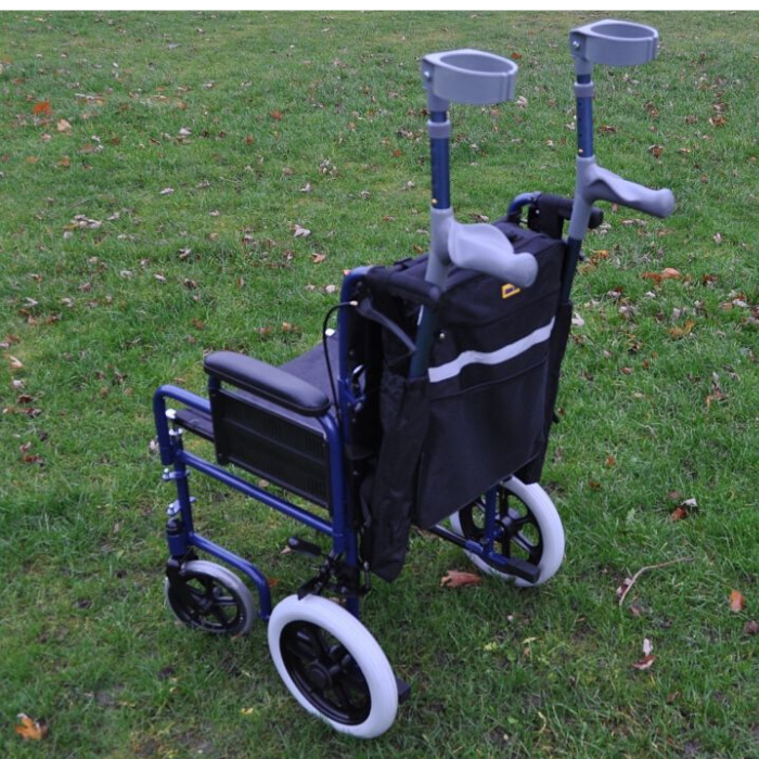 Our range of Wheelchair Bags includes the Walking Stick Bag with two side sleeves to hold either your crutches or walking sticks in place. Both bags are durable and waterproof with different pockets. They are ideal for storing waterproof clothing when not in use.